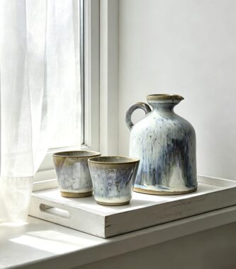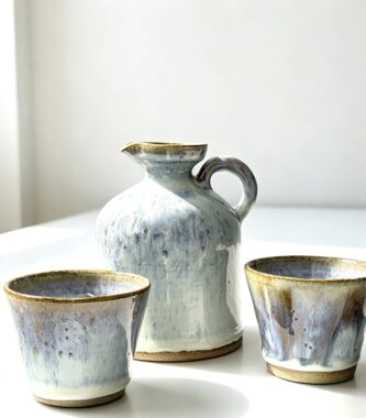 Each piece of this Huaning Pottery sake set is handmade by artisans, from shaping to glazing and firing. The blue-white glaze flows naturally in the kiln, creating unique kiln-change patterns. Made from local Yunnan clay…