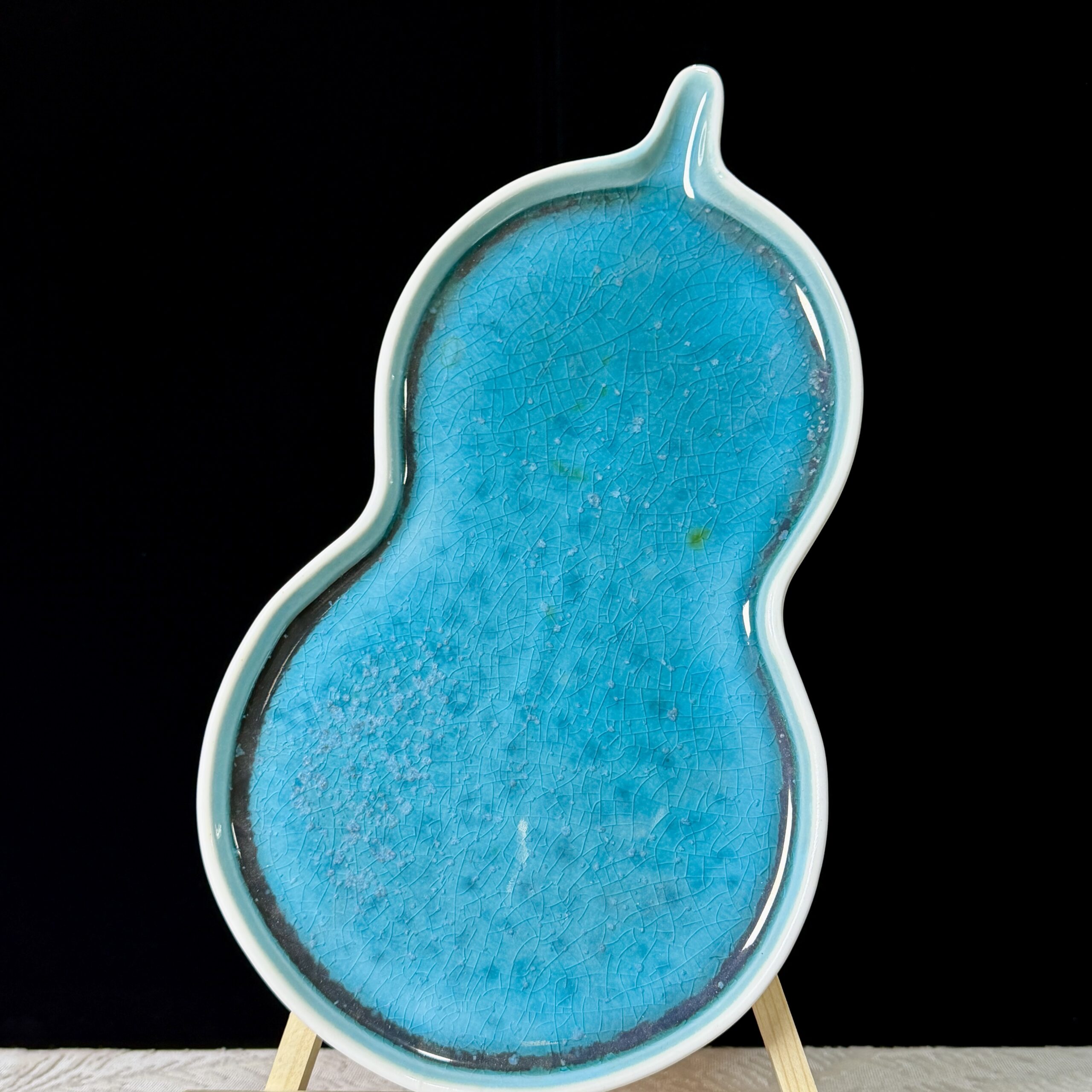 Forged in the 1300°C kiln fires of Yunnan’s mist-shrouded highlands, this hand-thrown gourd-shaped tea tray is a living testament to the region’s millennia-old pottery traditions and the symbolic charm of Chinese folklore.