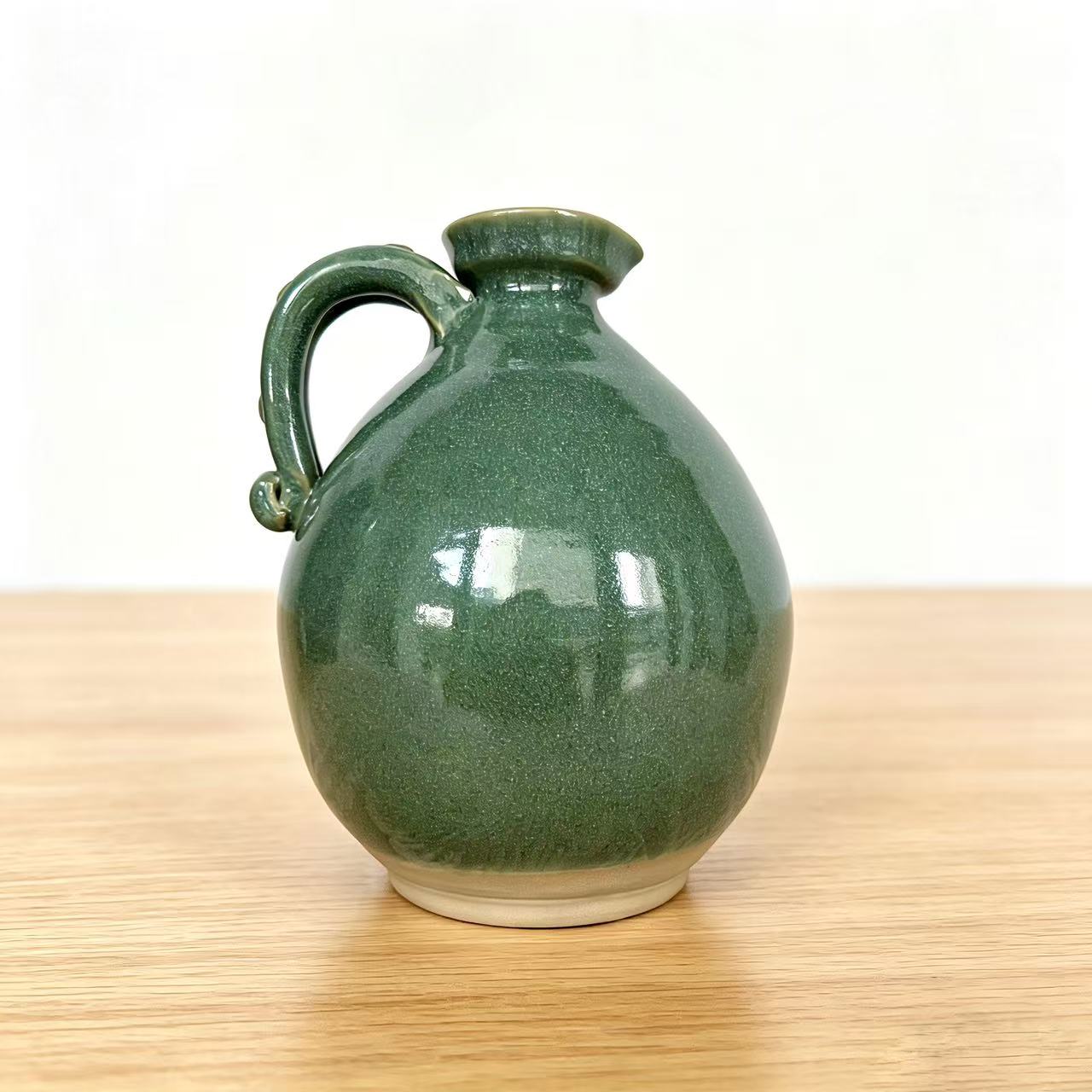 Shaped entirely by hand from native Yunnan clay, this jug is fired at 1300°C to lock in a rich, timeless green glaze that glows softly in the light. The rounded, balanced body and sturdy, sculpted handle feel perfect in your hand, while the smooth spout pours cleanly every time.