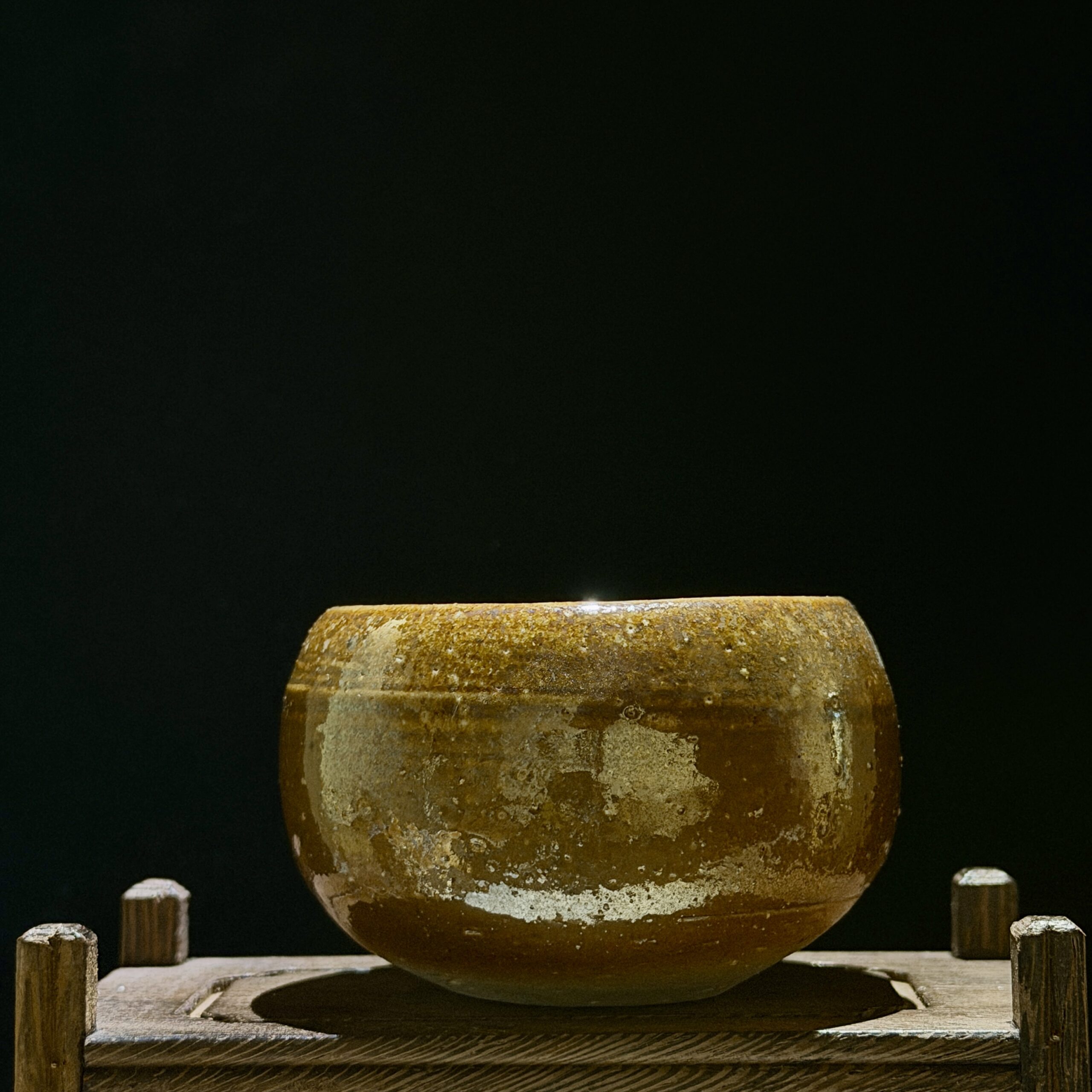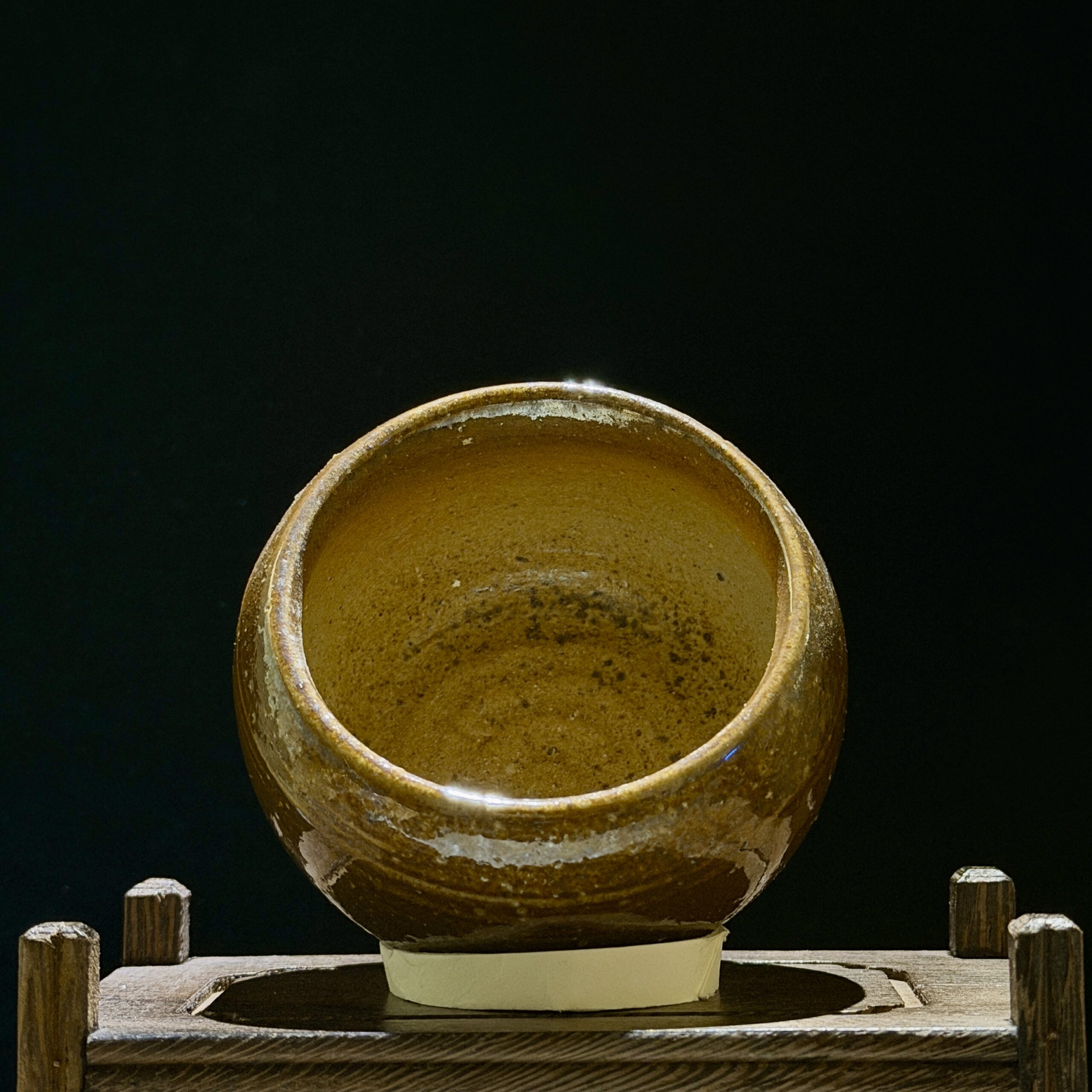 Every curve is shaped by the potter’s fingers, its robust, rounded form echoing the earthenware jars that have stored Yunnan’s grains and teas for centuries. The rich amber-brown glaze, streaked with silvery ash deposits and tiny black specks, is a direct product of the wood-firing process—flames licking the clay, ash settling into crevices, creating a texture as rough and warm as the sun-baked village hearths of Yunnan. No two pieces are identical; each bears the unique fingerprint of the fire, the wind, and the artisan’s touch.